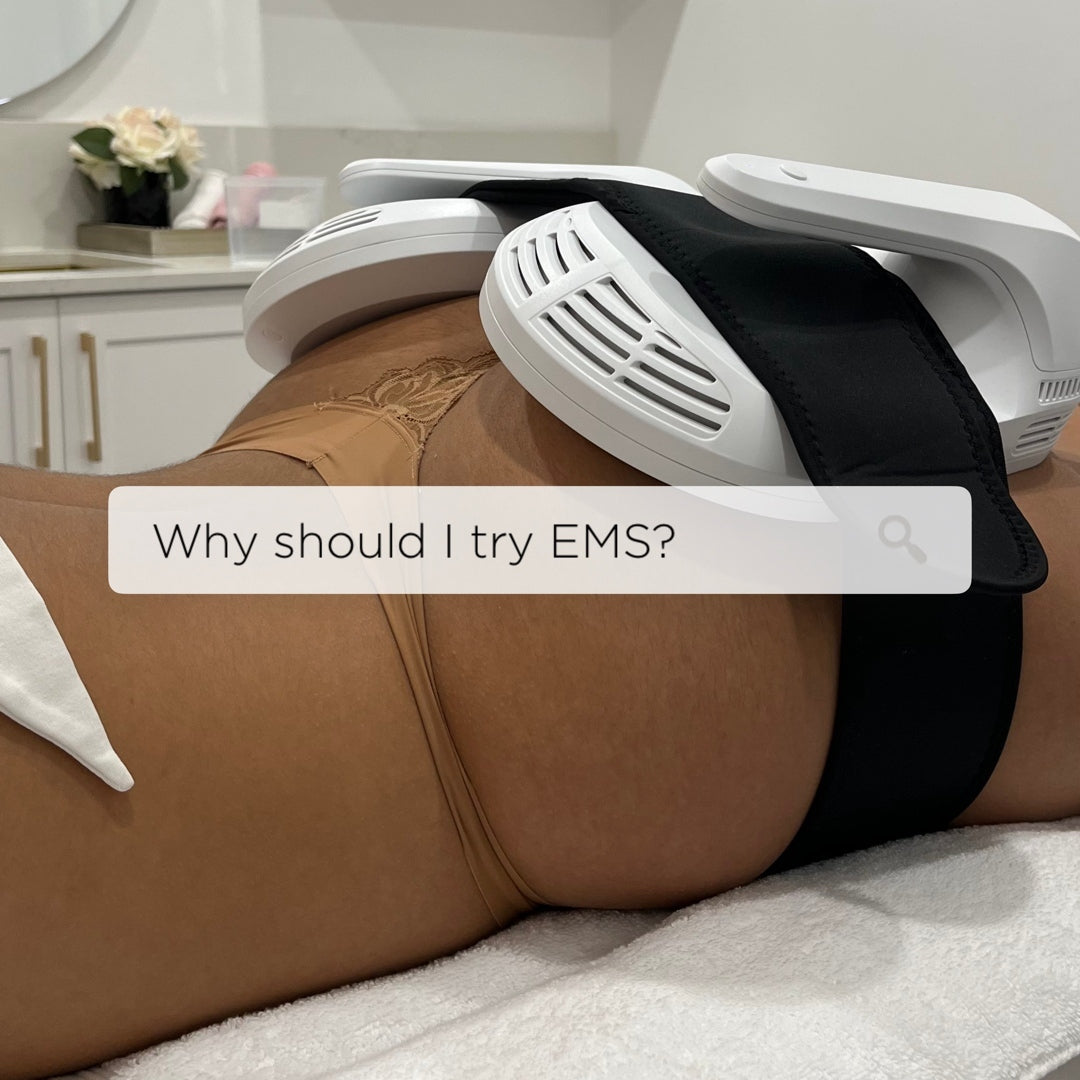EMS uses electrical impulses to stimulate muscle contractions, toning and strengthening muscles without exercise.